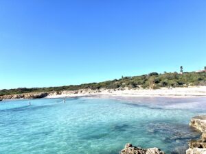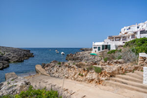 A solo cinco minutos a pie se encuentra la playa de Binibeca, famosa por su arena fina y aguas cristalinas. Justo enfrente de los apartamentos, el acceso directo al mar desde las rocas permite darse un baño en aguas tranquilas y transparentes, perfectas para nadar o practicar snorkel en un entorno natural y auténtico